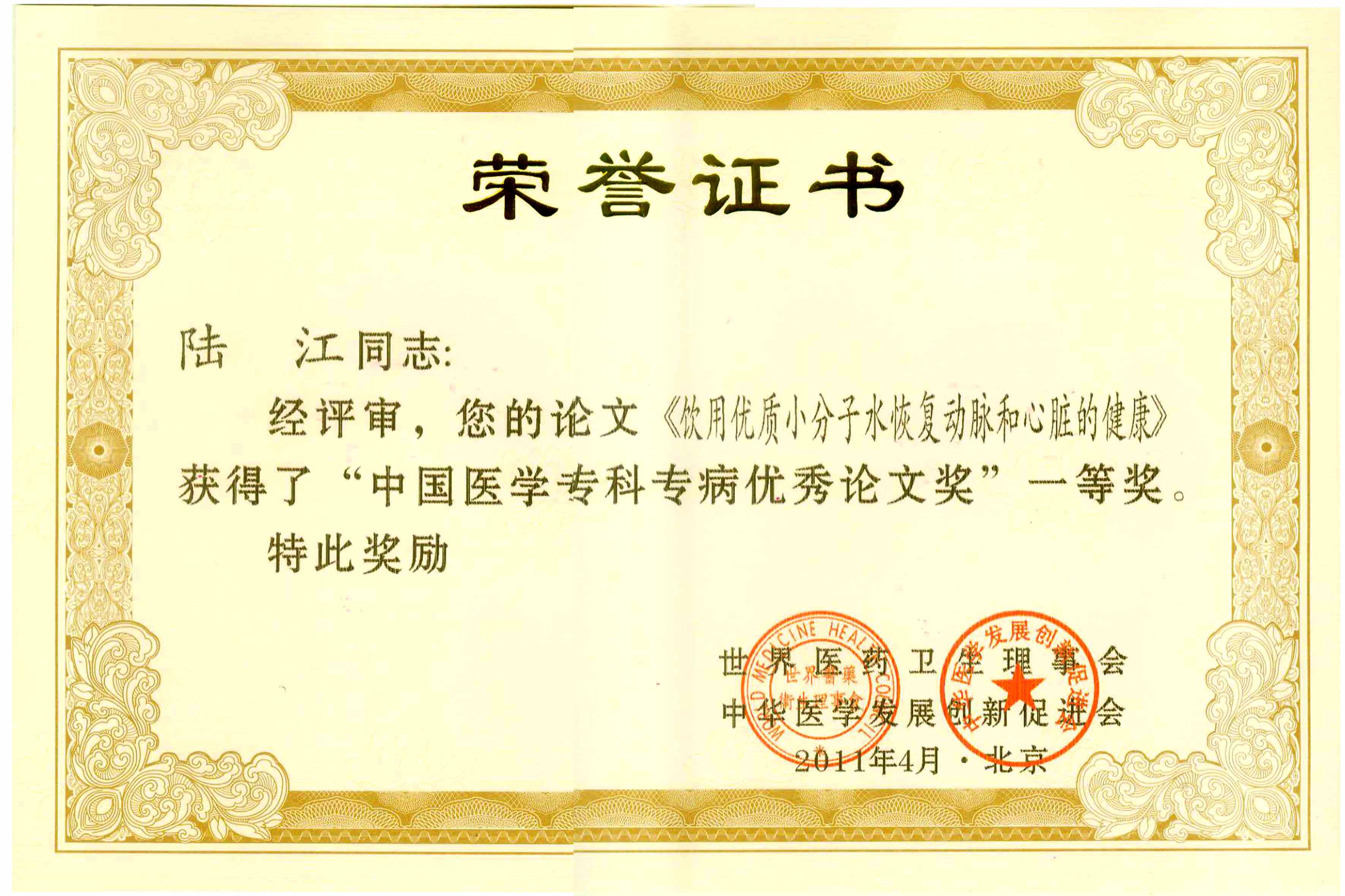 -----我是從事建筑的高工,本來沒有資格去攻克醫(yī)學(xué)難題,卻為了自身健康才扣響醫(yī)學(xué)的大門。由于我1990年患高血壓,因怕中風(fēng)才研究發(fā)明了離子水瓶,我把水處理成微小分子團(tuán)水,飲用后治愈了高血壓。便于1993年底送到三家省級醫(yī)院做臨床試用4個月。經(jīng)北京和廣西醫(yī)學(xué)專家鑒定:"降脂降壓效果好"," 能擴(kuò)大心腦動脈流量,改善心腦電圖以及微循環(huán)","對治療心腦動脈粥樣硬化、高血壓、高血脂有良好的醫(yī)療保健作用。""產(chǎn)品的技術(shù)性能和療效達(dá)到了同類產(chǎn)品的國內(nèi)領(lǐng)先水平,經(jīng)廣西醫(yī)學(xué)科學(xué)情報(bào)研究所檢索,未見國外有類似報(bào)道。"中國醫(yī)學(xué)科學(xué)院張正國教授從美國國立醫(yī)學(xué)圖書館數(shù)據(jù)庫存Medline檢索英俄文資料,均未見類似報(bào)告。2000年上市后,我為了對消費(fèi)者負(fù)責(zé)而繼續(xù)觀察研究,一直通過《信譽(yù)卡》和《質(zhì)量跟蹤調(diào)查書》向患者承諾療效,請用戶使用6個月后反饋效果。和脂壓患者飲用2至5個月內(nèi),消除癥狀,停服藥物,血壓正常;冠心病患者飲用3~5個月逐漸減輕至消除心絞痛、房顫等癥狀,不再服藥,飲用1年左右心電圖正常,經(jīng)冠脈造影掃描無明顯狹窄,表明冠心病痊愈。大量患者還反映許多衰弱器官被修復(fù),讓前列腺增生、慢性咽喉炎、慢性氣管炎、支氣管炎、慢性胃炎、腸炎和膽囊炎等不藥而愈;2型糖尿病患者是因?yàn)橐葝u衰弱致病,飲用該水半年至一年,逐漸減藥至停藥,血糖尿糖正常,真正治愈2型糖尿病。中風(fēng)后遺癥患者飲用六七個月,可逐漸減輕至消除肢體和語言障礙,表明飲用該水能讓壽命很長的神經(jīng)元細(xì)胞逐漸修復(fù),奇跡般地恢復(fù)肢體和語言功能。飲用后還使胸腺和脾臟兩個重要的免疫器官被修復(fù)和增強(qiáng),產(chǎn)生免疫細(xì)胞多,提高了免疫力,使人不生病或少生病。自此, 飲用微小分子團(tuán)水創(chuàng)造了攻克冠心病、高(低)血壓和糖尿病三大醫(yī)學(xué)難題的奇跡。人們對此感到不可思議,但實(shí)踐是檢驗(yàn)真理的唯一標(biāo)準(zhǔn)。